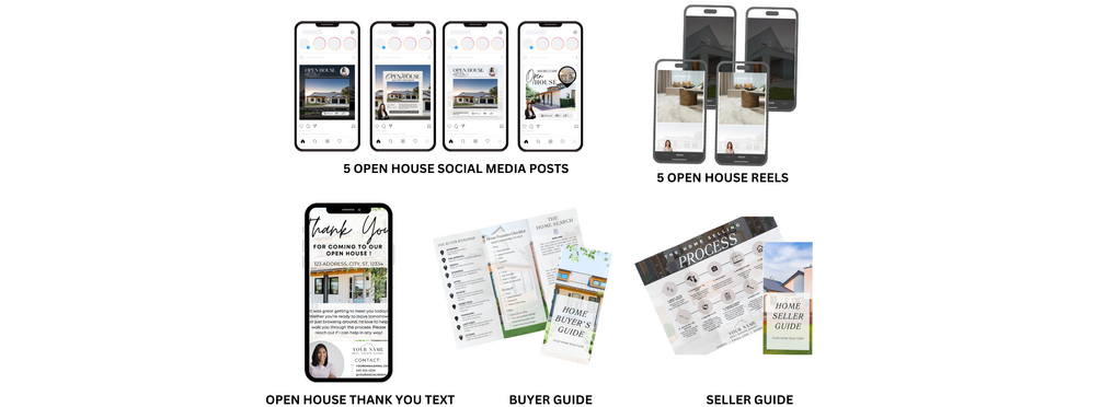 Check out our Open House Bundle for real estate pros who want to step up their marketing game with ease. We're all about saving you time and hassle by offering trendy, customizable Canva templates. Stay current and standout both online and offline with our unique real estate marketing materials.