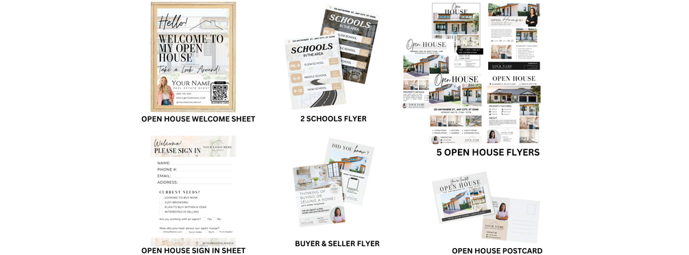 Check out our Open House Bundle for real estate pros who want to step up their marketing game with ease. We're all about saving you time and hassle by offering trendy, customizable Canva templates. Stay current and standout both online and offline with our unique real estate marketing materials.
